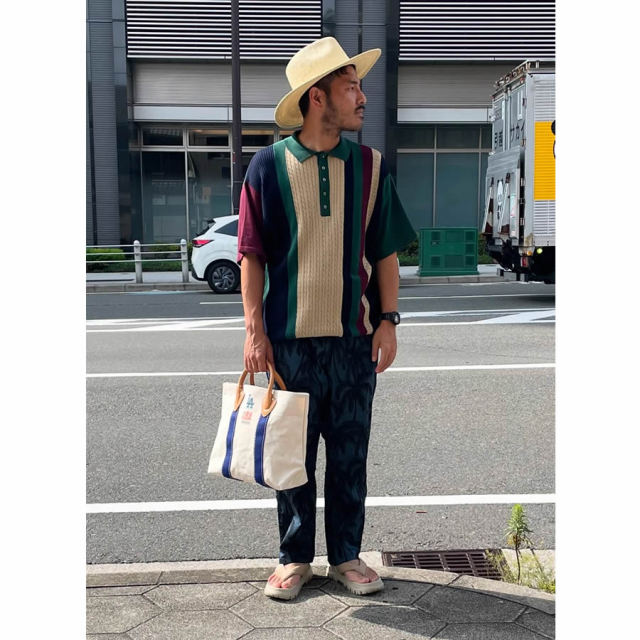 このシリーズでは、薄手でパリッとした質感のコットン素材を使用し、パームツリー柄が施されています。