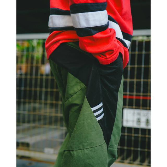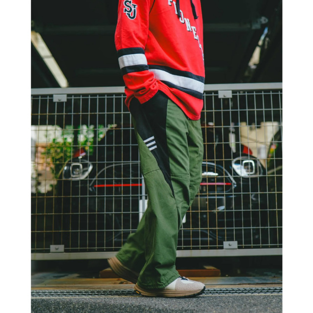 PANTS2000年頃のクラブスタイルを彷彿とさせる、ミリタリー×ジャージのリメイクパンツ。