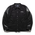 袖やポケット口にはマットな質感のシンセティックレザーを採用したメルトンコーチジャケットです。