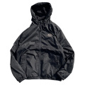 ナイロン素材を使用したシンプルなフード付きジップアップジャケット。