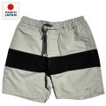 前後に10cm幅でシワ感のあるナイロン生地で切り替えを入れ、シンプルなショートパンツにアクセントをプラスしています。
